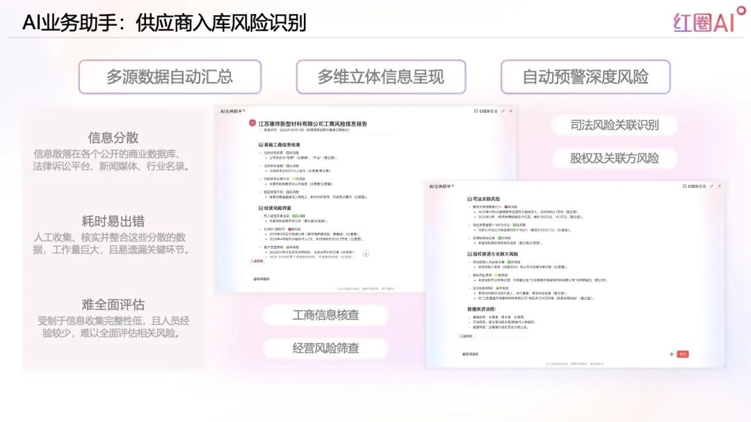 紅圈AI業(yè)務(wù)助手:秒級(jí)識(shí)別合約/供應(yīng)商風(fēng)險(xiǎn),智能處理文件,釋放員工潛能!