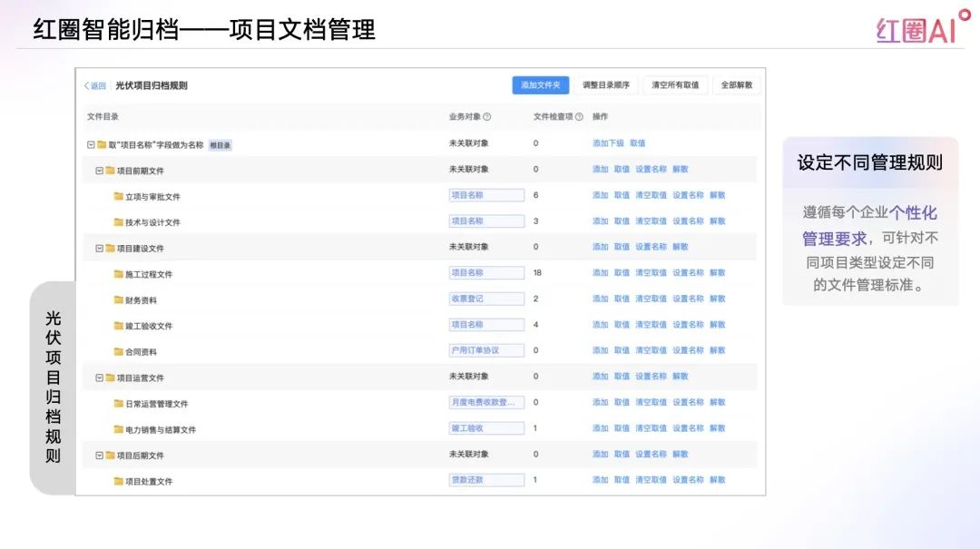AI可根據(jù)遵循每個企業(yè)個性化管理要求,針對不同項目類型設(shè)定不同的文件管理標(biāo)準(zhǔn);