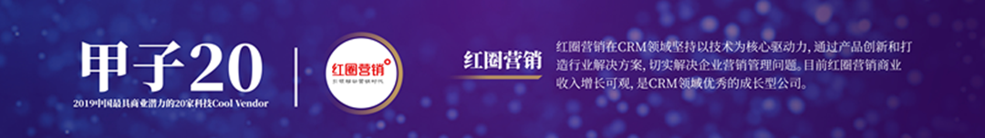 “紅圈營(yíng)銷”榮獲甲子20“2019中國(guó)最具商業(yè)潛力的20家科技Cool?Vendor”