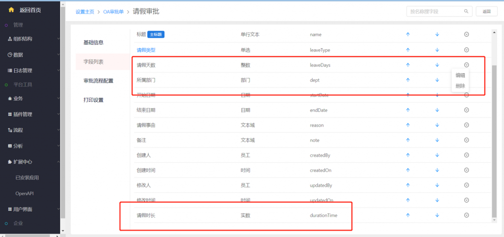 OA審批單—請(qǐng)假審批中默認(rèn)增加實(shí)數(shù)類型的“請(qǐng)假時(shí)長(zhǎng)”字段;原“請(qǐng)假天數(shù)”改為可刪除