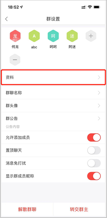 5)群資料入口遷移至群設(shè)置中