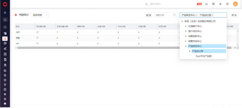 1)web端,考勤統(tǒng)計(jì)儀表板,篩選部門支持多選