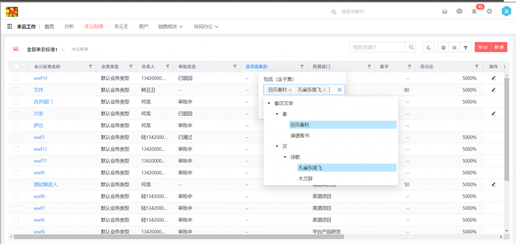 2)選項(xiàng)值集的單選字段,在作為維度時(shí),可以分層級(jí)統(tǒng)計(jì),類似部門;比如選擇一級(jí)進(jìn)行查看,每行維度會(huì)匯總當(dāng)前一級(jí)選項(xiàng)以及所有下級(jí)選項(xiàng)的數(shù)據(jù)
