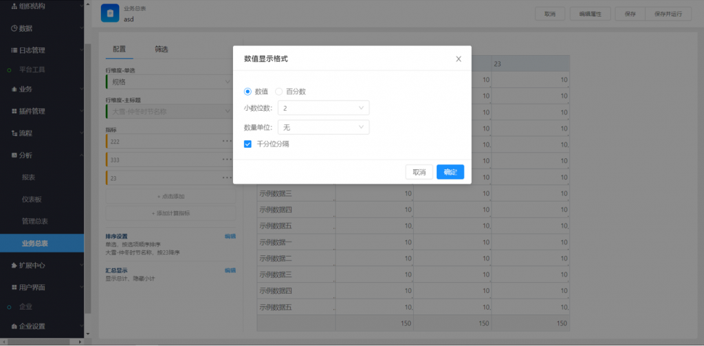 2) 指標(biāo)可設(shè)置數(shù)值顯示格式,便于超長(zhǎng)數(shù)據(jù)的單位縮進(jìn),或小數(shù)位數(shù)的格式統(tǒng)一等
