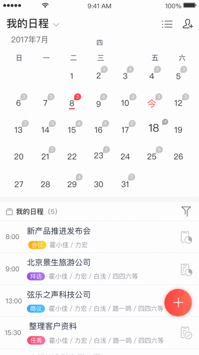 紅圈CRM+的日程管理功能,能夠幫助業(yè)務(wù)人員合理制定工作計(jì)劃,各項(xiàng)計(jì)劃完成情況全程記錄可追溯,業(yè)務(wù)人員每天拜訪了多少家客戶、新增了多少客戶資料、推進(jìn)了哪個(gè)項(xiàng)目等,都能得到清晰的呈現(xiàn),管理層可以據(jù)此對員工的能力和工作狀況進(jìn)行科學(xué)評估,并結(jié)合業(yè)績數(shù)據(jù)對業(yè)務(wù)員進(jìn)行及時(shí)指導(dǎo)。