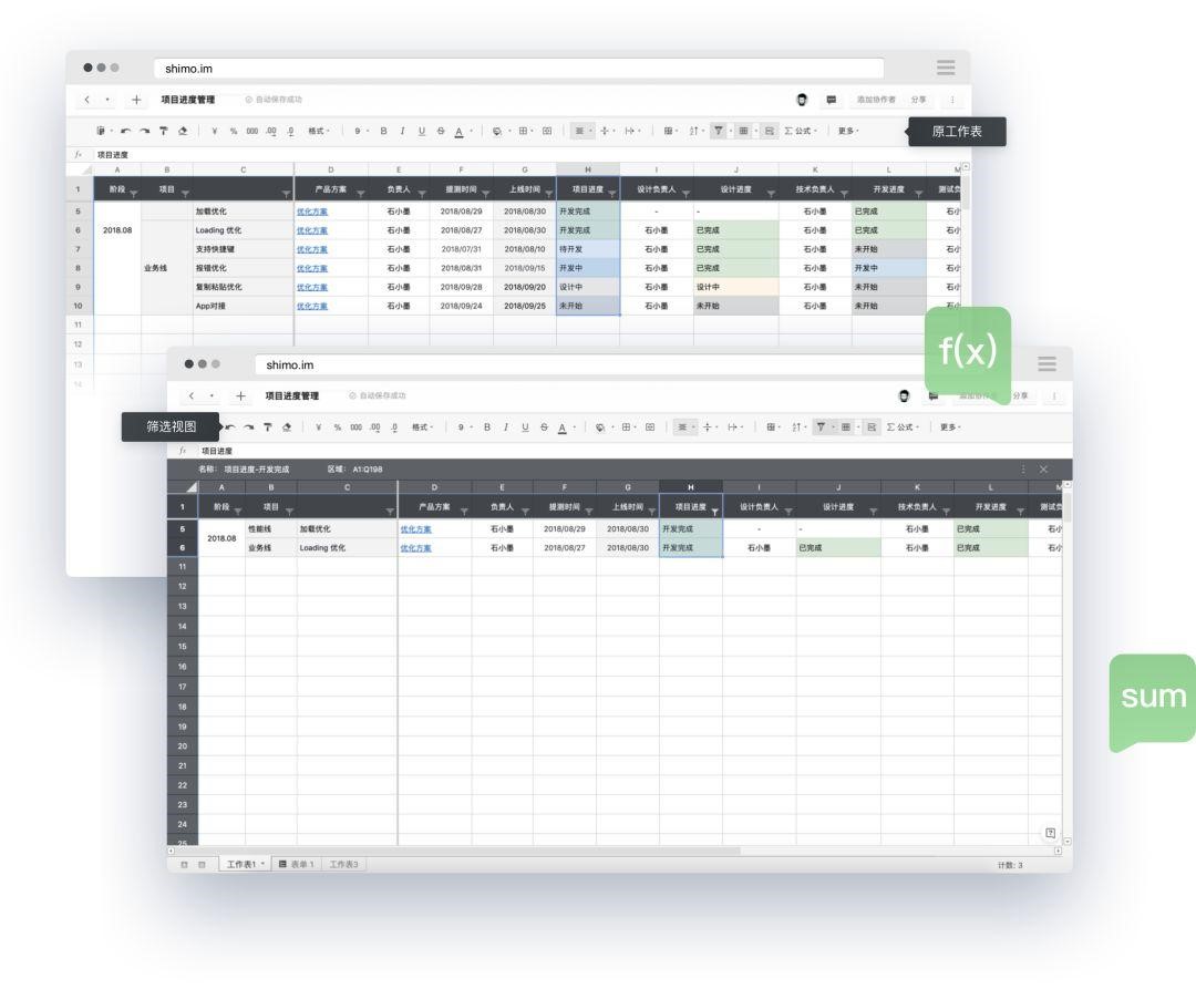 石墨表格,完美兼容本地 Excel 文件,導(dǎo)入導(dǎo)出流暢無損,無格式混亂;提供的 6 大函數(shù)類別,400+公式,基本可以覆蓋 90%主流辦公軟件;支持單元格鎖定,可根據(jù)不同協(xié)作者開放不同層級的查看/編輯權(quán)限;支持篩選視圖,協(xié)作者可獨(dú)立篩選數(shù)據(jù)而不互相干擾。