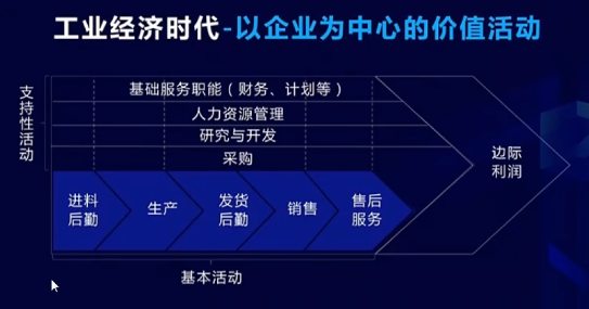 在邁克爾波特的價(jià)值鏈理論中企業(yè)整個(gè)的價(jià)值鏈的價(jià)值是由基本活動(dòng)來實(shí)現(xiàn)的,或者生產(chǎn),或者銷售,或者供應(yīng),或者服務(wù),或者渠道。然后支持性的活動(dòng)是保證價(jià)值活動(dòng)效率和成本最佳,所以你會(huì)發(fā)現(xiàn)整個(gè)價(jià)值是一個(gè)鏈條產(chǎn)生的。