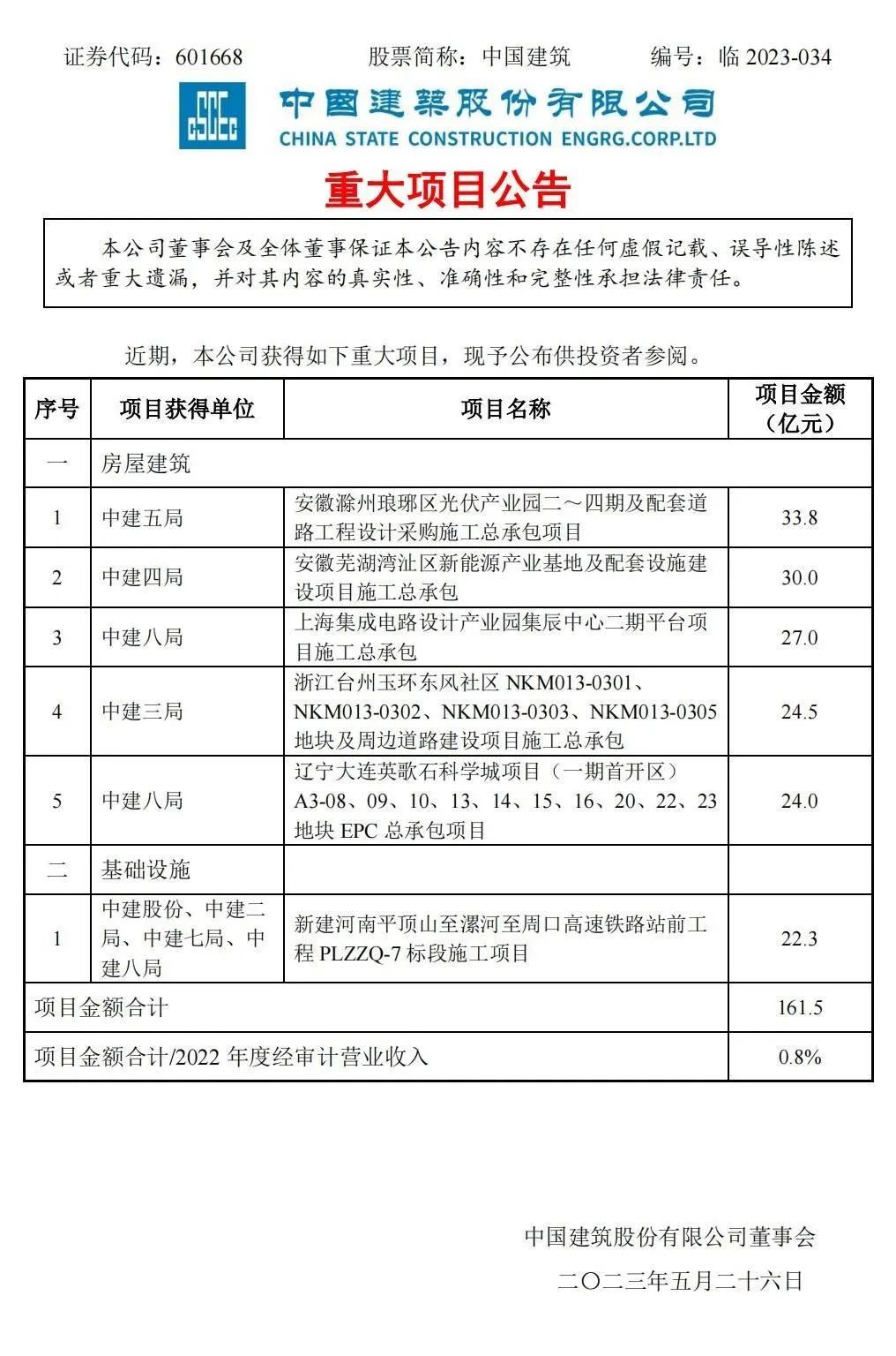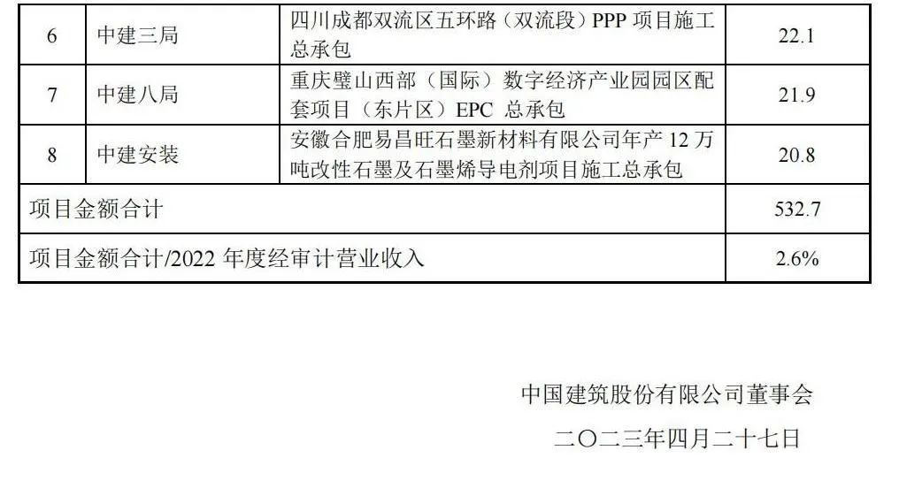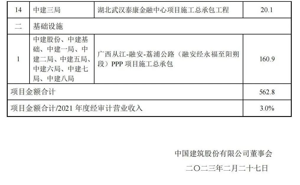 附中國建筑重大項目公告: