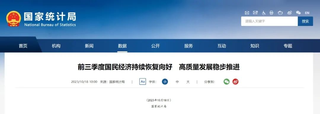 10月18日,國家統(tǒng)計(jì)局發(fā)布2023年三季度國民經(jīng)濟(jì)相關(guān)數(shù)據(jù)。初步核算,前三季度國內(nèi)生產(chǎn)總值913027億元,按不變價格計(jì)算,同比增長5.2%。建筑業(yè)第三季度總產(chǎn)值23193億元,前三季度60197億元。