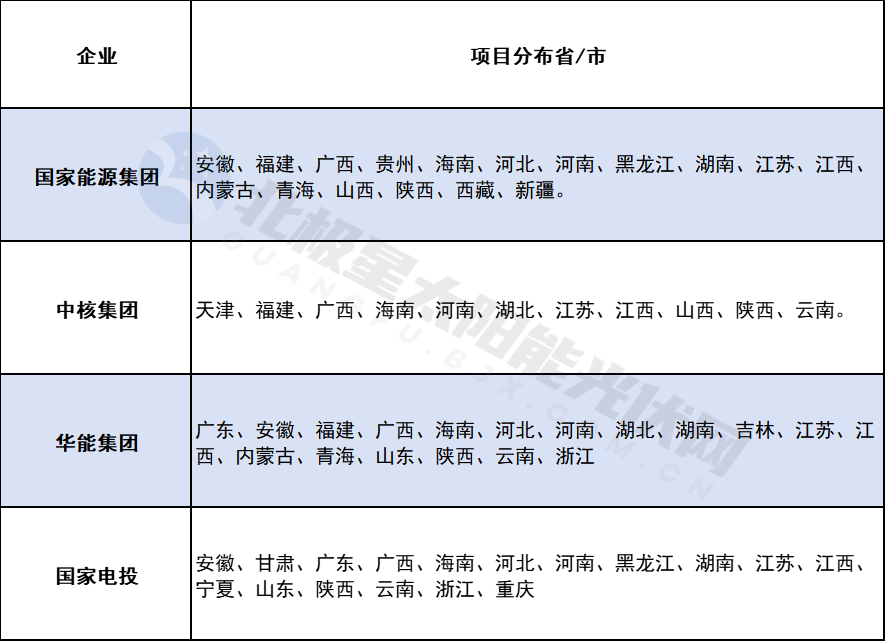具體來看,國家電投以76個(gè)項(xiàng)目的總規(guī)模約10388MW位列首位,這些項(xiàng)目分布于安徽、福建、廣西等17個(gè)省份。