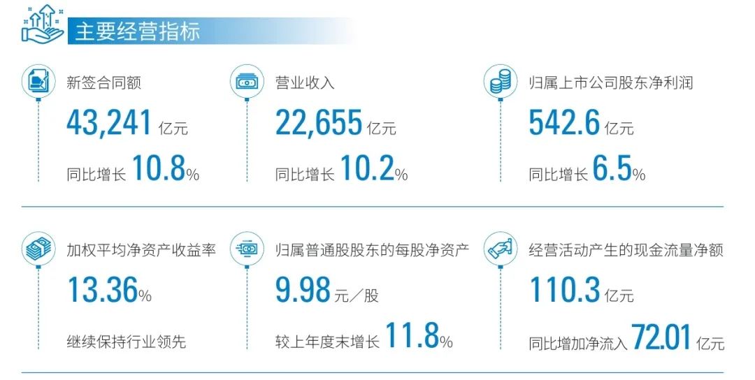 基建業(yè)務(wù)實(shí)現(xiàn)較快增長(zhǎng),新簽合同額11685億元,同比增長(zhǎng)15.1%,營(yíng)業(yè)收入5566億元,同比增長(zhǎng)12.8%;