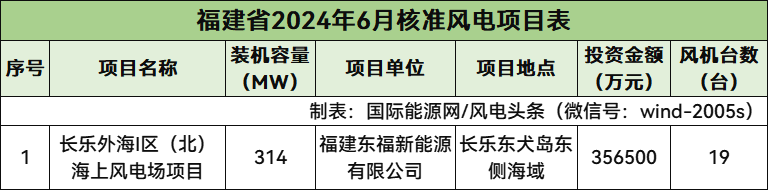 福建核準(zhǔn)1個風(fēng)電項(xiàng)目,總規(guī)模314MW,為海上風(fēng)電項(xiàng)目。