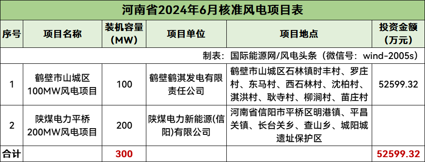 河南核準(zhǔn)2個風(fēng)電項(xiàng)目,總規(guī)模300MW,總投資52599.32萬元,均為陸上風(fēng)電項(xiàng)目。