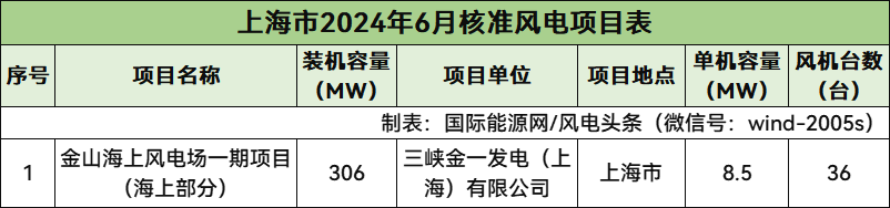 上海核準(zhǔn)1個風(fēng)電項(xiàng)目,總規(guī)模306MW,為海上風(fēng)電項(xiàng)目。