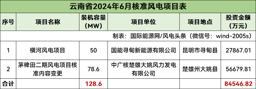 云南核準(zhǔn)2個風(fēng)電項(xiàng)目,總規(guī)模128.6MW,總投資84546.82萬元,均為陸上風(fēng)電項(xiàng)目。