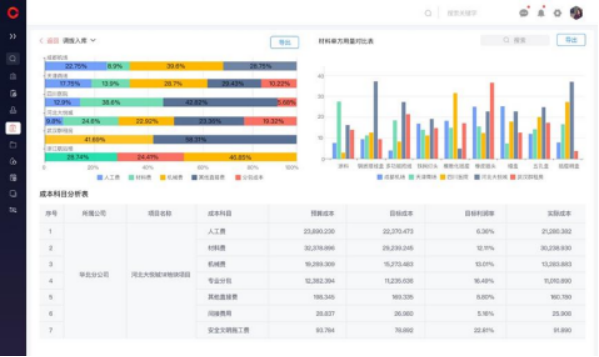 系統(tǒng)支持通過報表引擎橫向?qū)Ρ炔煌?xiàng)目的成本數(shù)據(jù)(如材料費(fèi)用、機(jī)械效率);