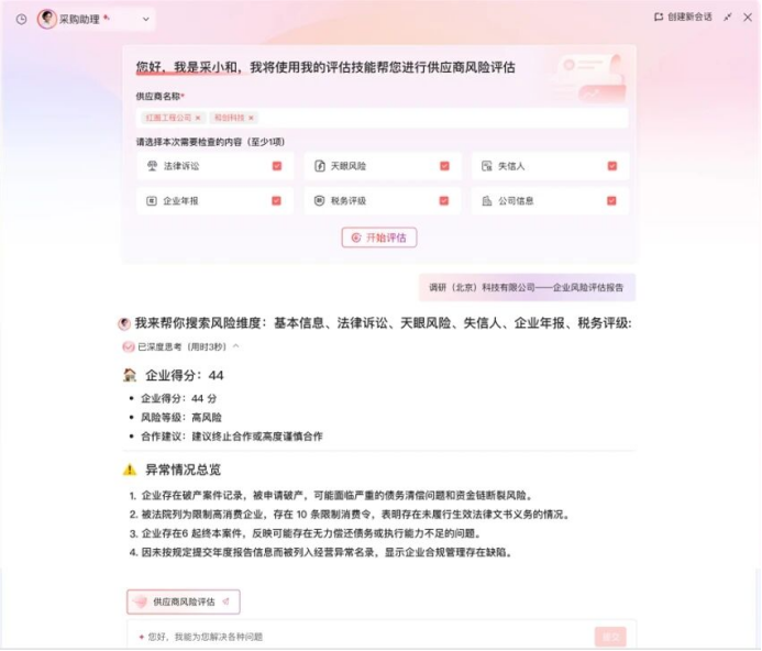 【采購(gòu)助理Agent——供應(yīng)商風(fēng)險(xiǎn)的“智能防火墻”】
