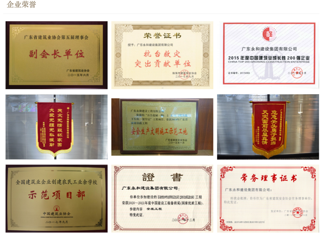 廣東永和建設(shè)集團(tuán)有限公司成立于2007年3月,注冊資金6億元,擁有3個一級資質(zhì):建筑工程施工總承包一級、市政公用工程施工總承包一級、建筑裝修裝飾工程一級,以及建筑機(jī)電安裝工程等17項(xiàng)專業(yè)承包資質(zhì),現(xiàn)已發(fā)展為集工程設(shè)計(jì)、施工、建筑材料供應(yīng)鏈、建筑勞務(wù)輸出一體化多元化發(fā)展的廣東省百強(qiáng)民營企業(yè)。 集團(tuán)管理機(jī)構(gòu)健全,實(shí)行區(qū)域化經(jīng)營管理,隨著集團(tuán)業(yè)務(wù)的不斷拓展,項(xiàng)目遍及廣東、廣西、海南、江西等省份。